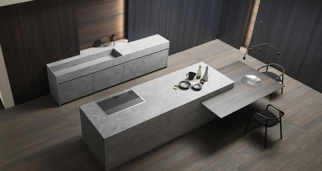 The stone kitchen represents the apex of Intero Decor projects: thanks to research and exploiting new technologies, it is able to transform a notoriously heavy material into a light material compatible with the kitchen environment.